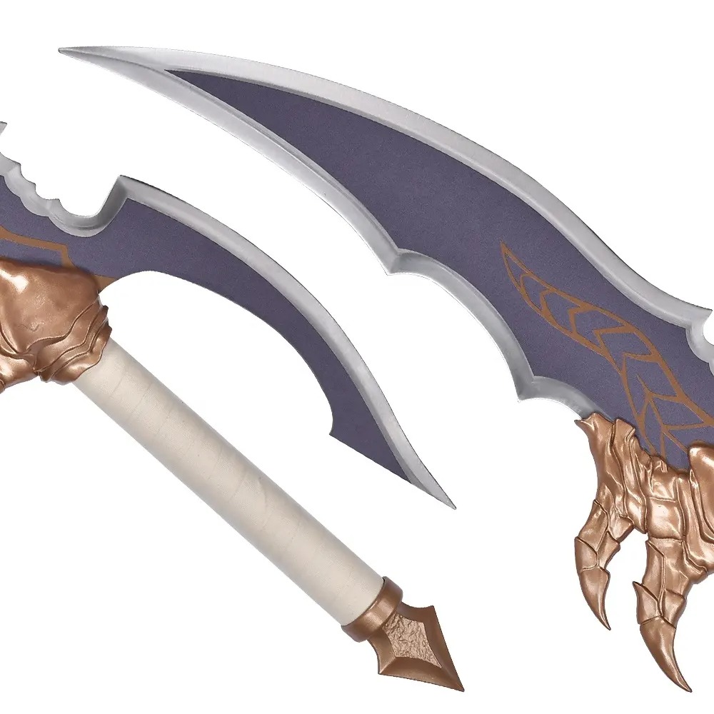 Unleash the bite of the beast with this Kasaka Venom Fang Dagger – a fierce wooden replica inspired by fantasy realms like League of Legends and Arcane. Designed with a wicked curved blade, intricate dragon claw guard, and gold-accented details, this dagger is both elegant and intimidating. Ideal for collectors, cosplayers, or fans of legendary weaponry.